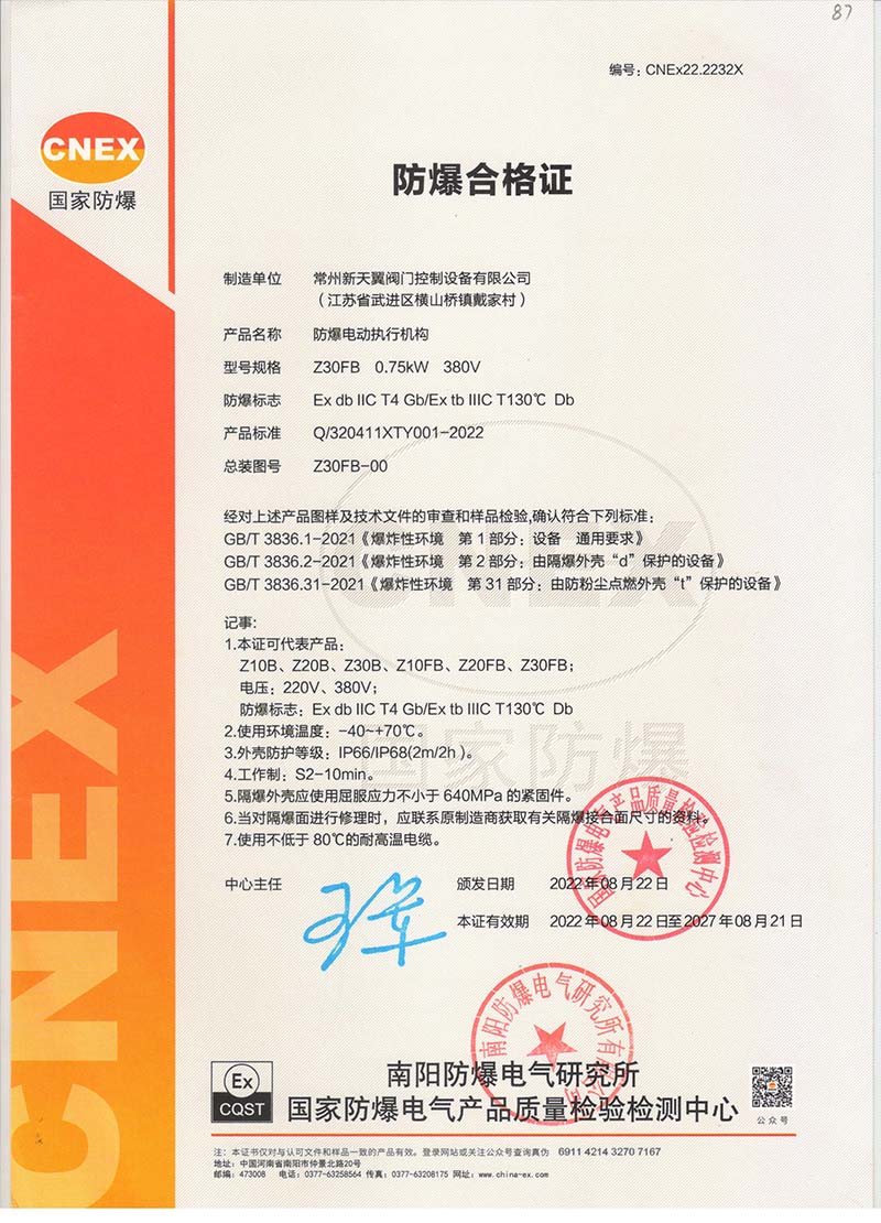 防爆Z10B Z10FB國家強制性產品認證CT4證書109.2