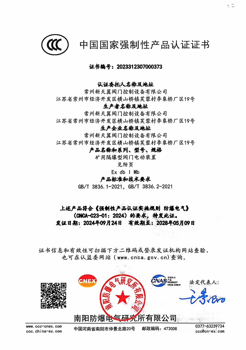 礦用隔爆ZB10-24中國國家強制性產品認證證書110.1
